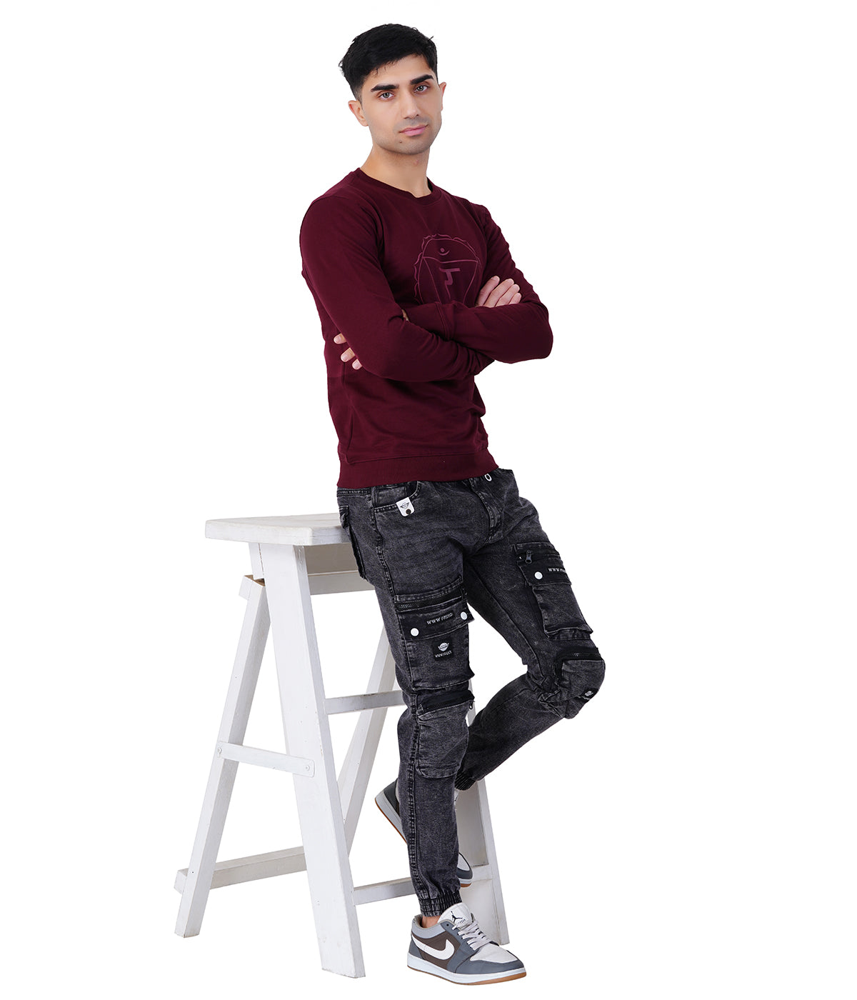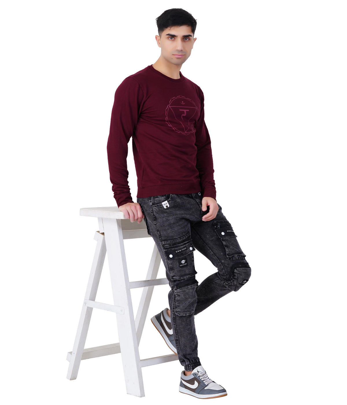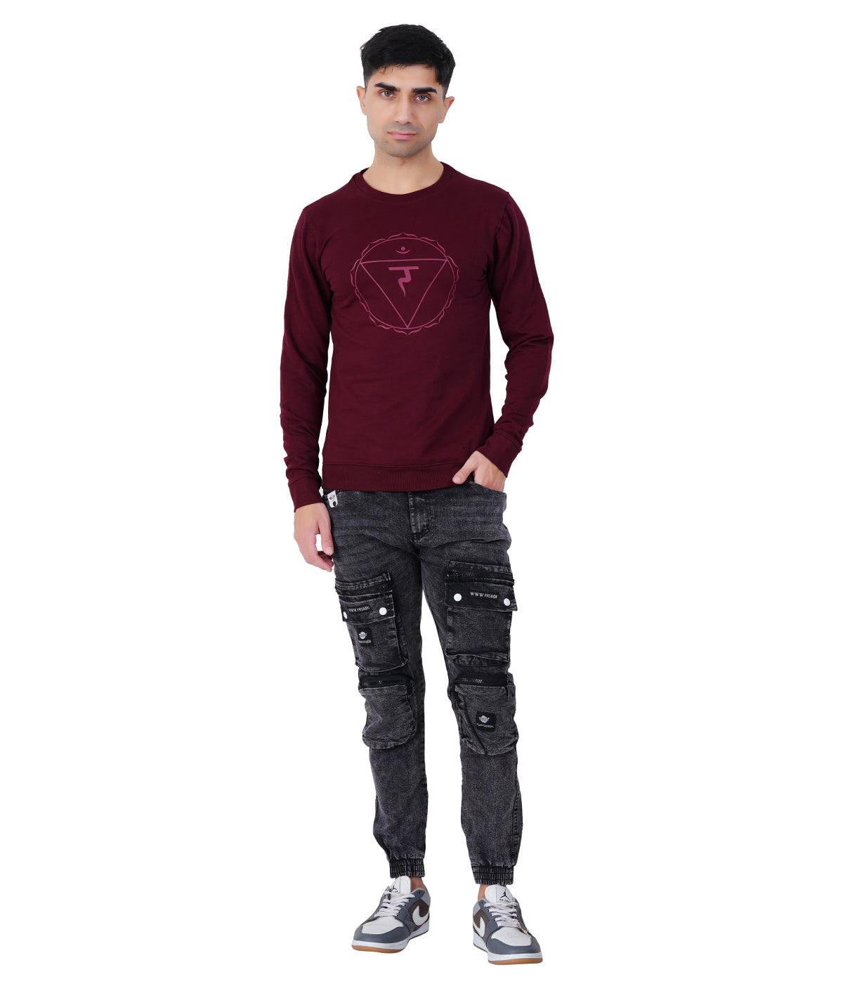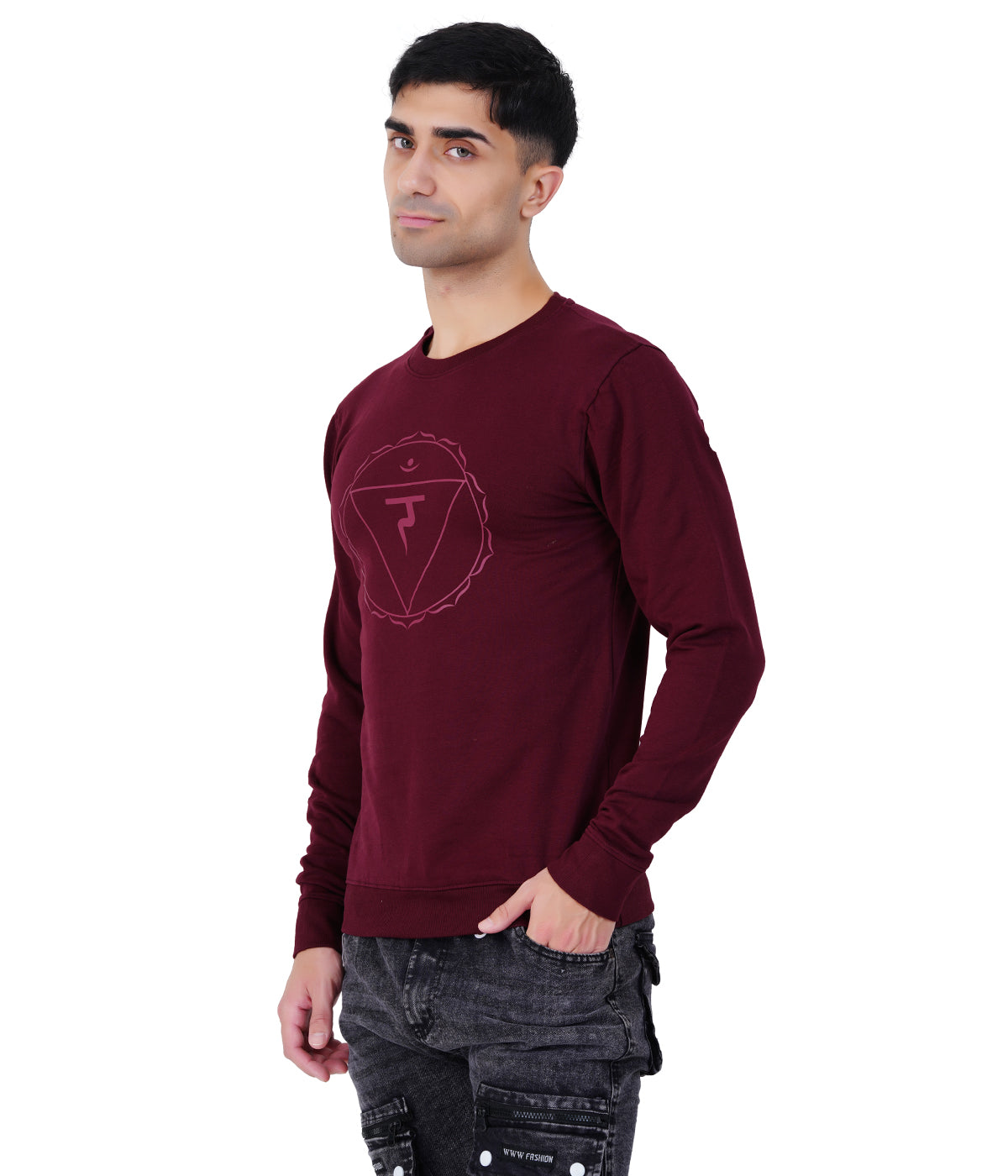 Wine Red Printed Sweat Shirts
